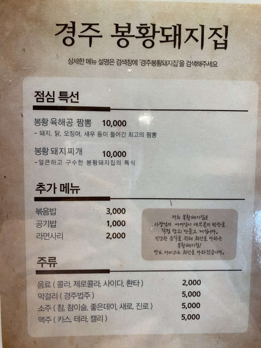 경주 봉황돼지집. 황리단길에서도 가까워 경주 여행 중 한 끼 식사로 딱 좋은 곳이었어요