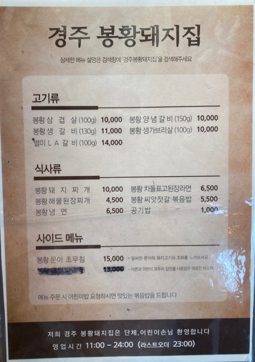 경주 황리단길 인근에서 고기 맛집 찾는다면 봉황돼지집 강력 추천드려요.