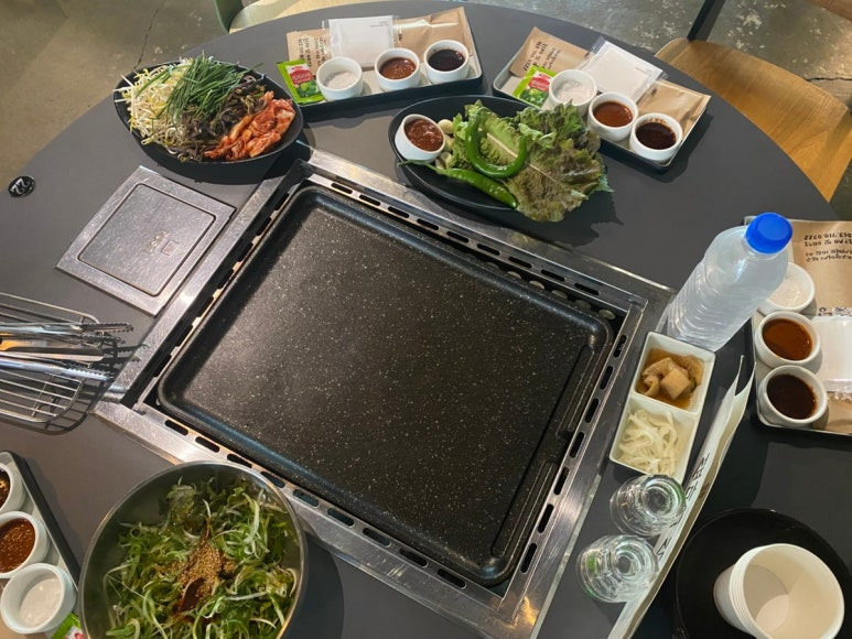 재료는 매장에서 제공 → 테이블에서 직접 볶아 먹는 시스템이에요.